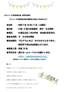 主催者 Picoナーサリ和田堀公園 電話 03-5913-9888 Eメール wadaboripark@kazenomori.or.jp 所在地 松ノ木小学校 〒166-0014 東京都杉並区松ノ木1丁目2−26 日付 2025年 10月 11日 (土) 期限切れ! 時刻 終日 【運動会に参加しませんか?】Picoナーサリ和田堀公園 9:00~ 『運動会』未就学児競技に参加しませんか? ※場所は松ノ木小学校になります このイベントをシェアする + Googleカレンダーに追加 + iCal / Outlookのエクスポート 満員