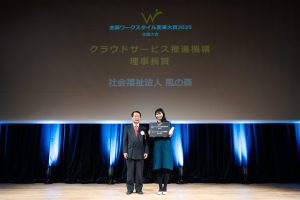 この度、社会福祉法人風の森が、社会課題に挑む画期的な取り組みを表彰する「全国ワークスタイル変革大賞2025」全国大会にて、【クラウドサービス推進機構理事長賞】を受賞しました!